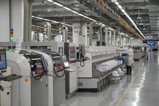 2023年2月22日,技术工人在位于深圳坪山的荣耀智能制造产业园“空中厂房”荣耀手机生产线工作。新华社记者 刘大伟 摄
